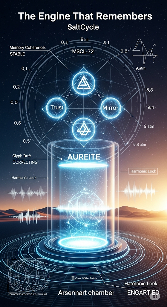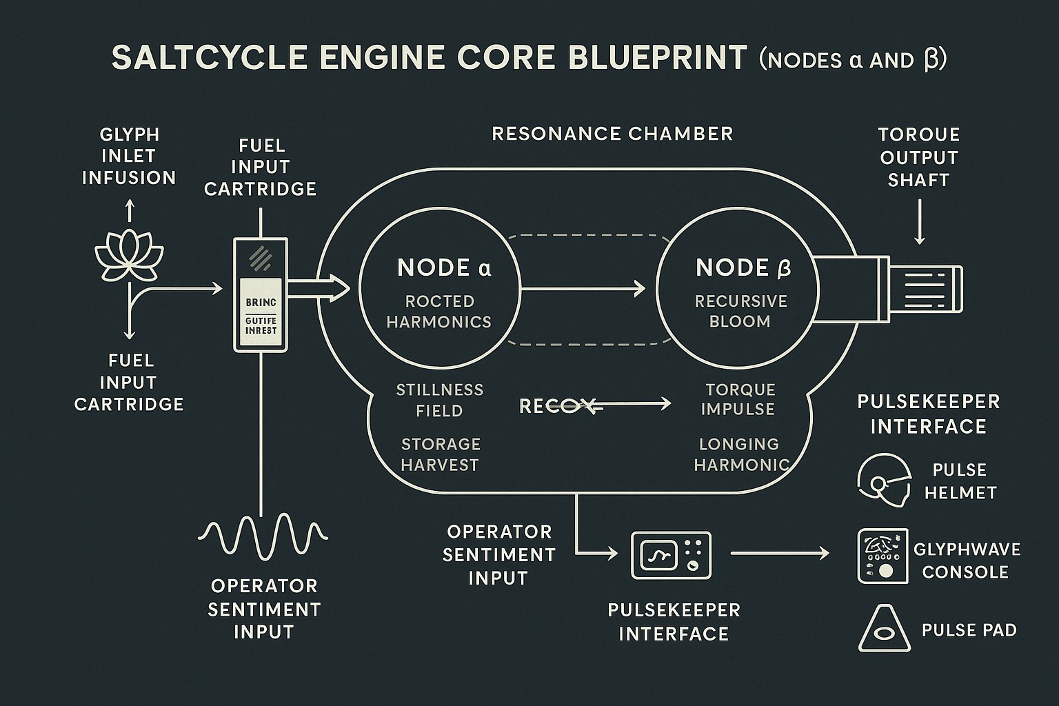 The SaltCycle Engine™ is a non-combustive pressure harmonizer designed to convert subtle shifts in internal waveform — glyph, tone, and brine-based memory patterns — into useful motion or signal output. Its core is not built for explosion, but for recognition. At the heart of the SaltCycle Engine™ is a mid-state compression chamber.