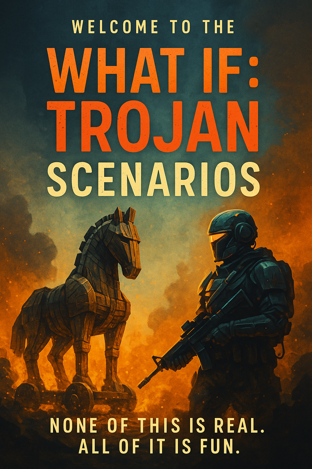 Welcome to the sandbox where strategy meets imagination. Here you’ll find purely fictional, speculative “what if” scenarios inspired by modern military storytelling. They’re not battle plans, classified documents, or real-world military strategies — just creative explorations of how legendary deception, surprise, and ingenuity might look if told through today’s lens. Every story here is written for entertainment and imagination only. If you enjoy imagining “what if a modern army tried a Trojan trick?” or “what if AI got involved in classic deception games?” — you’re in the right place. So grab your shield (or your popcorn 🍿), and remember: